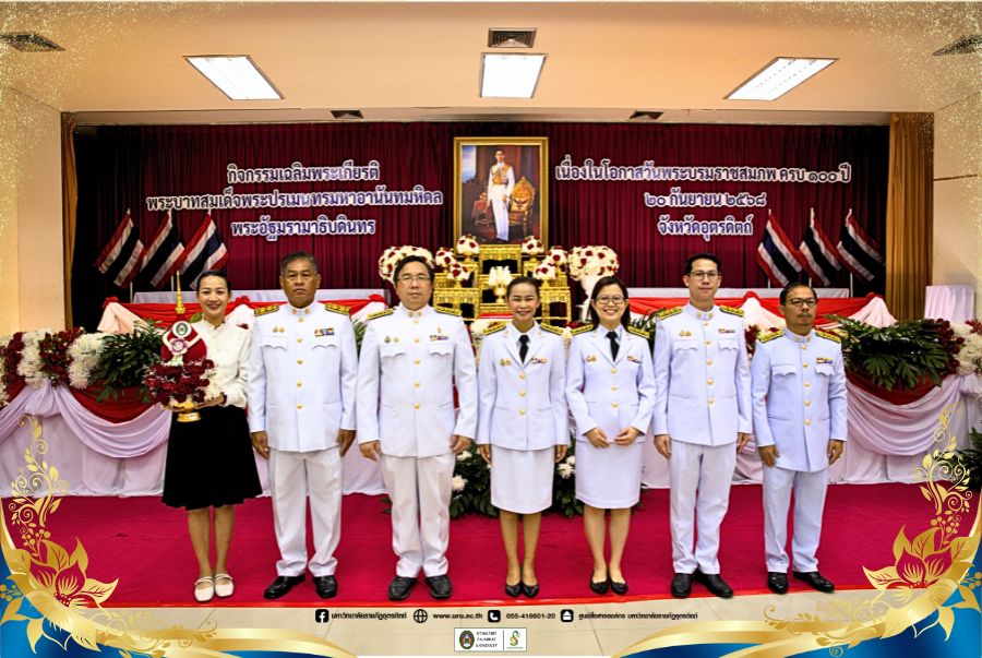 ทั้งหมดได้เข้าร่วมคณะของมหาวิทยาลัยราชภัฏอุตรดิตถ์ นำโดยผู้ช่วยศาสตราจารย์ ดร.สุพรรษา จิตต์มั่น รองอธิการบดี พร้อมด้วยตัวแทนบุคลากรของมหาวิทยาลัย ในการเข้าร่วมกิจกรรมเฉลิมพระเกียรติพระบาทสมเด็จพระปรเมนทรมหาอานันทมหิดล พระอัฐมรามาธิบดินทร เนื่องในวาระครบรอบ ๑๐๐ ปี วันพระบรมราชสมภพ ประกอบด้วยกิจกรรมพิธีเจริญพระพุทธมนต์ พิธีทำบุญตักบาตรพระสงฆ์ เพื่อถวายเป็นพระราชกุศล และพิธีวางพานพุ่มดอกไม้ถวายราชสักการะ ณ ศาลาประชาคมจังหวัดอุตรดิตถ์ ตำบลท่าอิฐ อำเภอเมือง จังหวัดอุตรดิตถ์