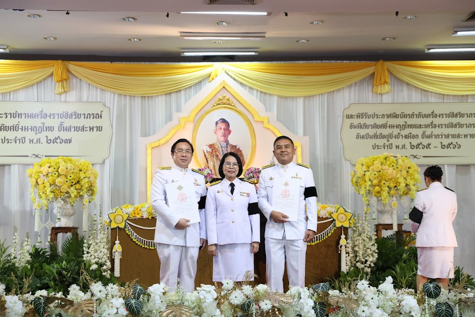 เข้ารับพระราชทานเครื่องราชอิสริยาภรณ์ฯ ประจำปี ๒๕๖๗ และใบประกาศนียบัตรกำกับเครื่องราชอิสริยาภรณ์ฯ ประจำปี ๒๕๖๕-๒๕๖๖ เบื้องหน้าพระบรมฉายาลักษณ์พระบาทสมเด็จพระวชิรเกล้าเจ้าอยู่หัว