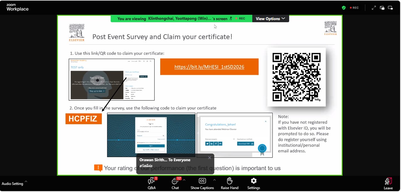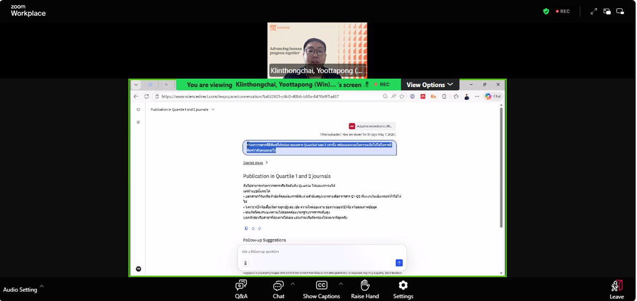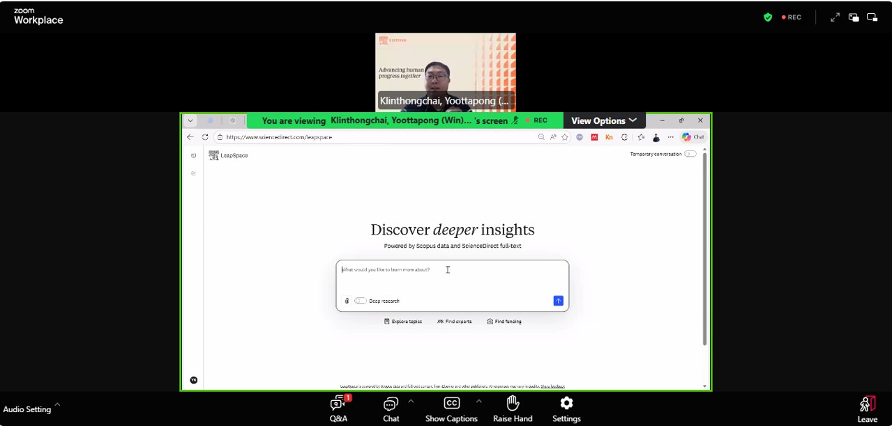 สวส.เข้าร่วมการฝึกอบรมออนไลน์แนะนำการใช้งานฐานข้อมูล ScienceDirect เพื่อการสืบค้นบทความวิชาการอย่างมีประสิทธิภาพ เทคนิคการค้นหา การกรองข้อมูล และการนำผลการค้นคว้าไปใช้ในการทำวิจัย (Introduction to ScienceDirect for research) โดย กระทรวงการอุดมศึกษา วิทยาศาสตร์ วิจัยและนวัตกรรม ร่วมกับ Elsevier
